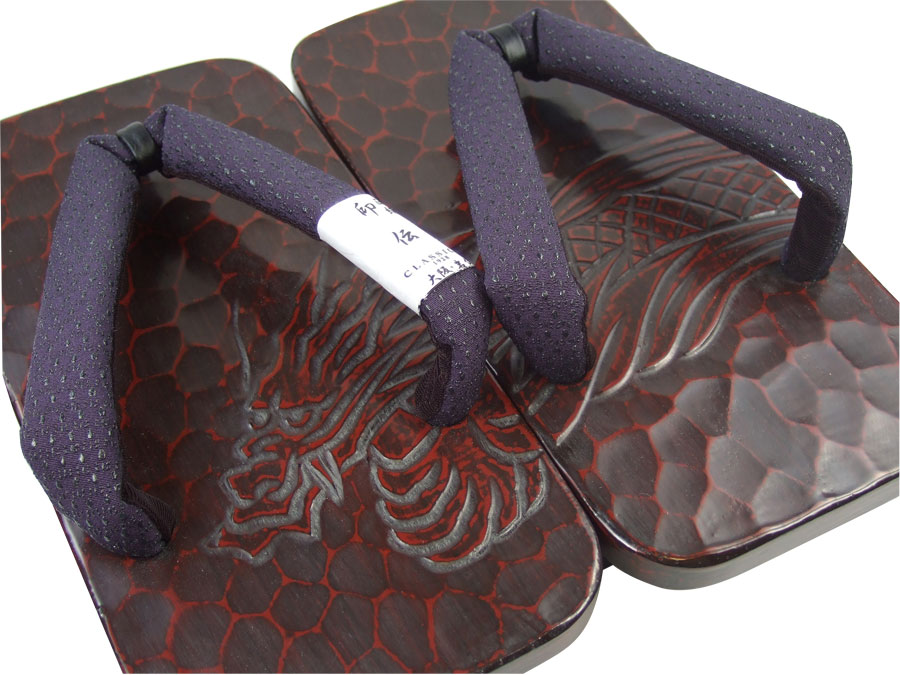 ガツンと履ける幅広タイプ!送料無料♪男物最高級桐下駄「龍(鎌倉彫)」【10P13Oct09】価格: 19,740円レビュー評価: 0.0 レビュー数:0 【カランコロンと音が鳴る♪】桐台に伝統の鎌倉彫を施した最高級男物下駄です。台の天部分には、運気を上げ、縁起が良いとされる龍が力強く彫られています。昔ながらの大きな下駄、たっぷり12cmの巾広タイプです。二枚歯で、歩くたびにカランコロンと美しい下駄の音を鳴らしてくれます。鼻緒は黒地の正絹地に印伝技法で細かな模様を施しました。下駄は足のかかとが後ろから少し出るようにして履いていただくと粋で綺麗です。浴衣や作務衣、夏の普段履きに、ぜひどうぞ。* 職人手作りのため、大量生産されません。1点のみの入荷です。■サイズ : 長さ 約24.5cm・巾 約12cm・高さ 約5.3cm (フリーサイズ)■素材:台 |